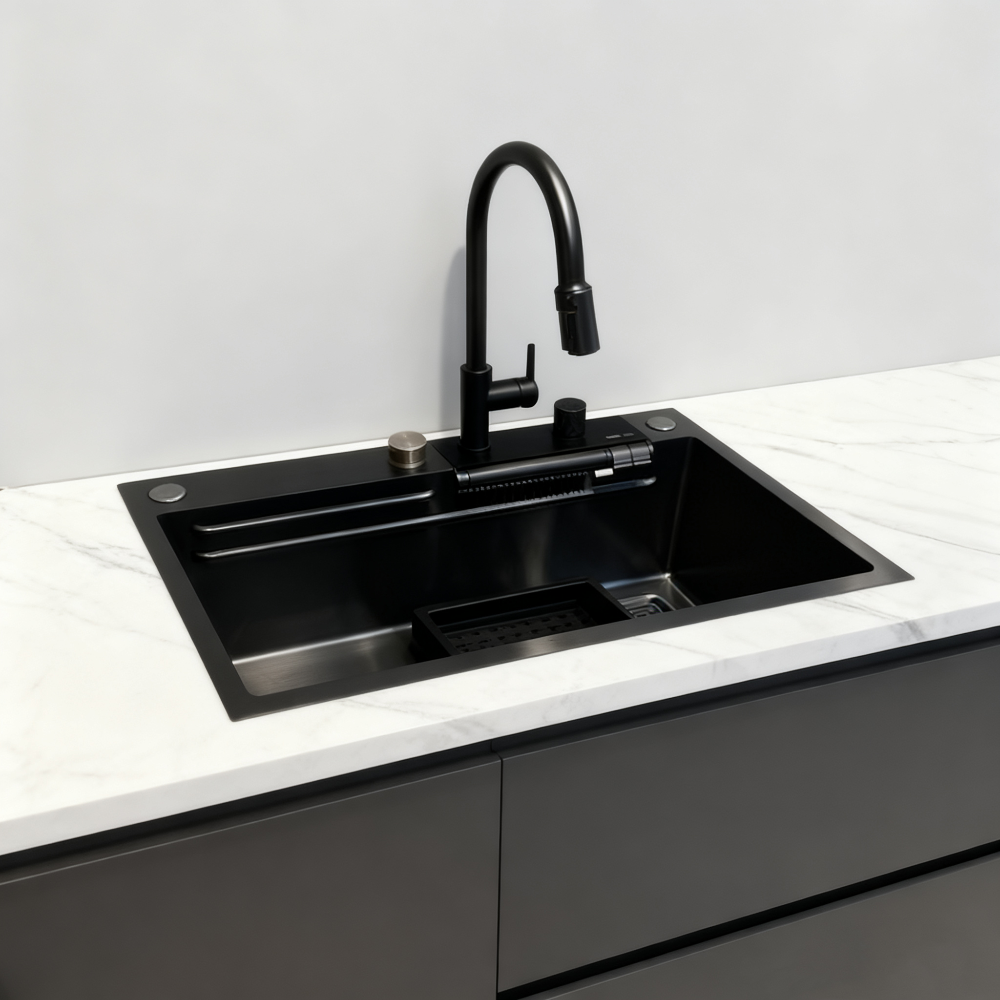 1. Flexible Installation: Supports 3 installation methods (top-mount, under-mount, flush-mount); large-diameter drain + filter basket prevents clogging and enables smooth drainage.