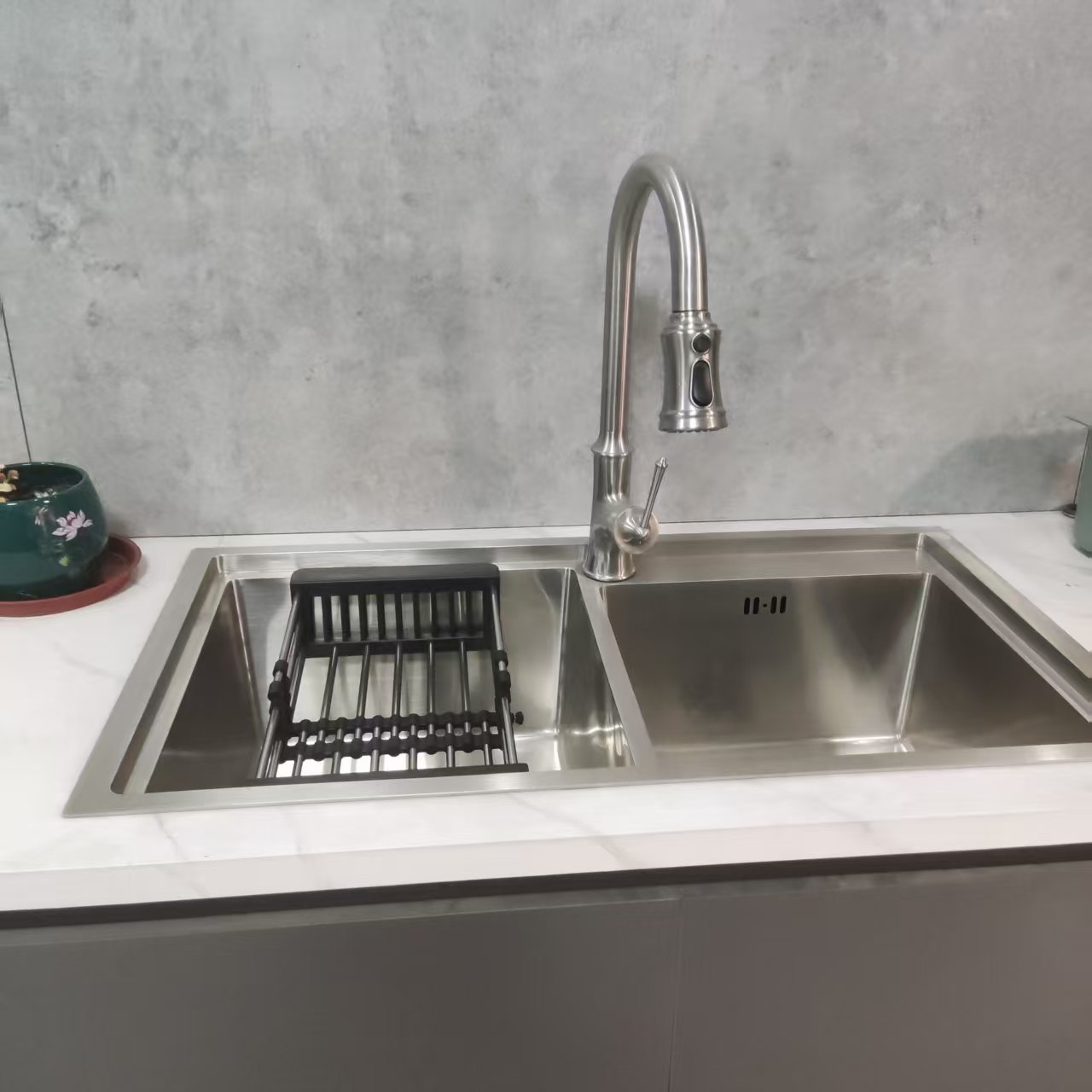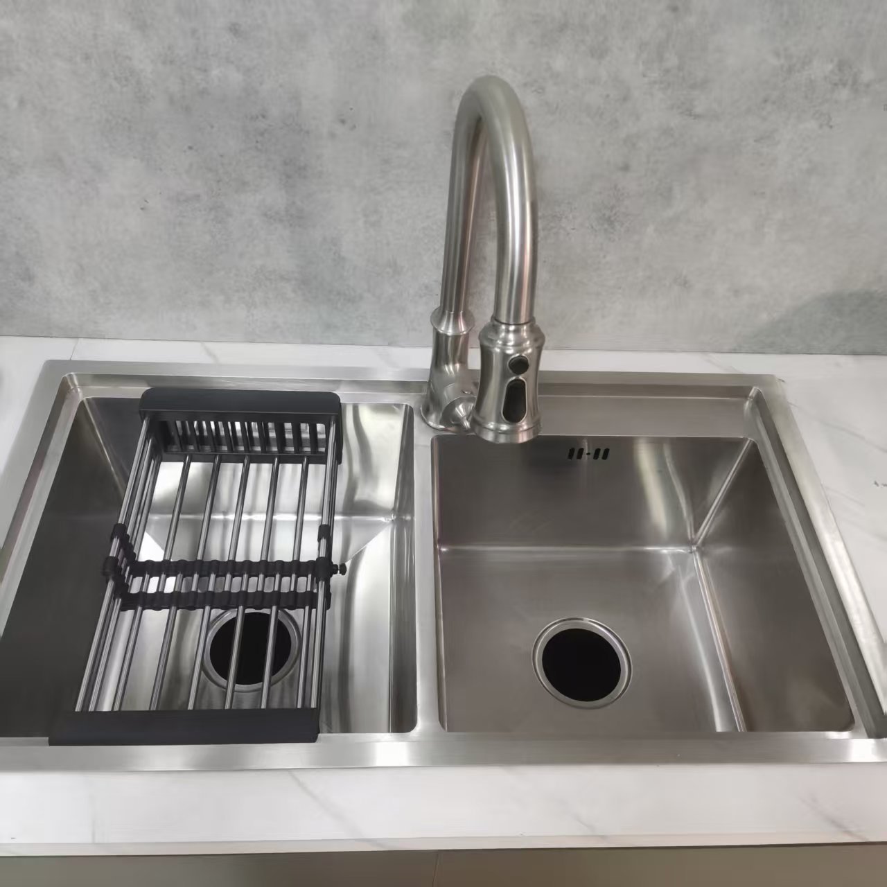 3. Opciones flexibles de tazón simple/doble: el tazón simple ahorra espacio en cocinas pequeñas; el recipiente doble admite limpieza dividida (limpieza + remojo simultáneamente). El recipiente más profundo (≥25 cm) puede contener fácilmente utensilios de cocina grandes, satisfaciendo las necesidades de diferentes familias y diseños de cocina.